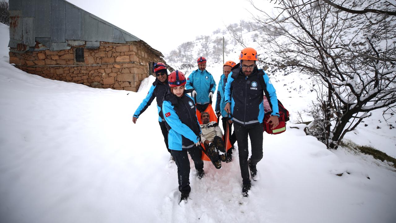 Çetin kış koşullarının etkili olduğu kentte kırsaldan 112 Acil Çağrı Merkezine gelen ihbarları değerlendiren UMKE, hastaların sağlık merkezlerine ulaşması için hızla harekete geçiyor.