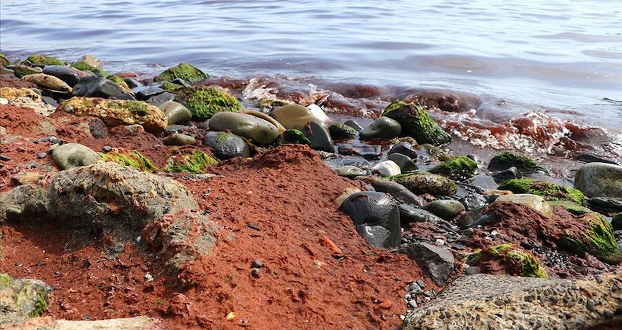 Tekirdağ’da sahili kırmızı yosun kapladı
